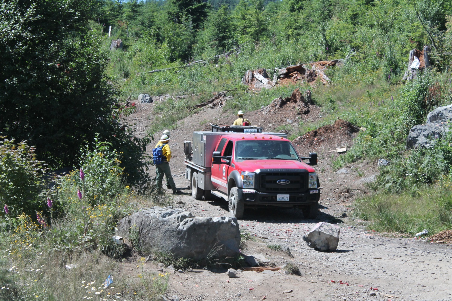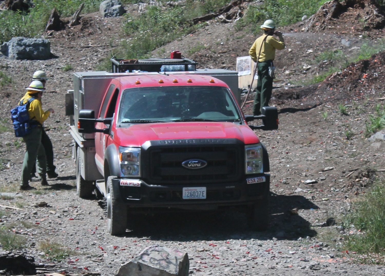 WA DNR FIRE CREW SNUFF OUT A SMOKING STUMP.