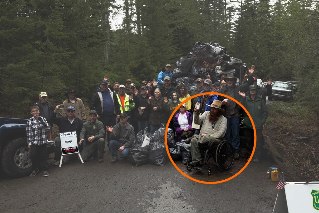 Trash No Land and Northwest Firearms recognizes Johnny as being a dedicated volunteer at cleanup events and has a sincere desire to see public lands be respected and open to all. Although he may have some restrictions because of his wheel chair, he does not hold back from chipping in and giving an honest days work. We are honored to help him out in this way.