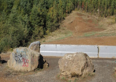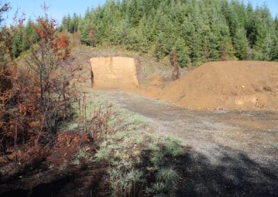 Lane 1: Remove fire damaged trees and brush on the back hillside. Carve out a solid backstop berm in the far hillside wall (similar to the example at lane 3). This will extend the lane from 24 yards to about 90 yards.